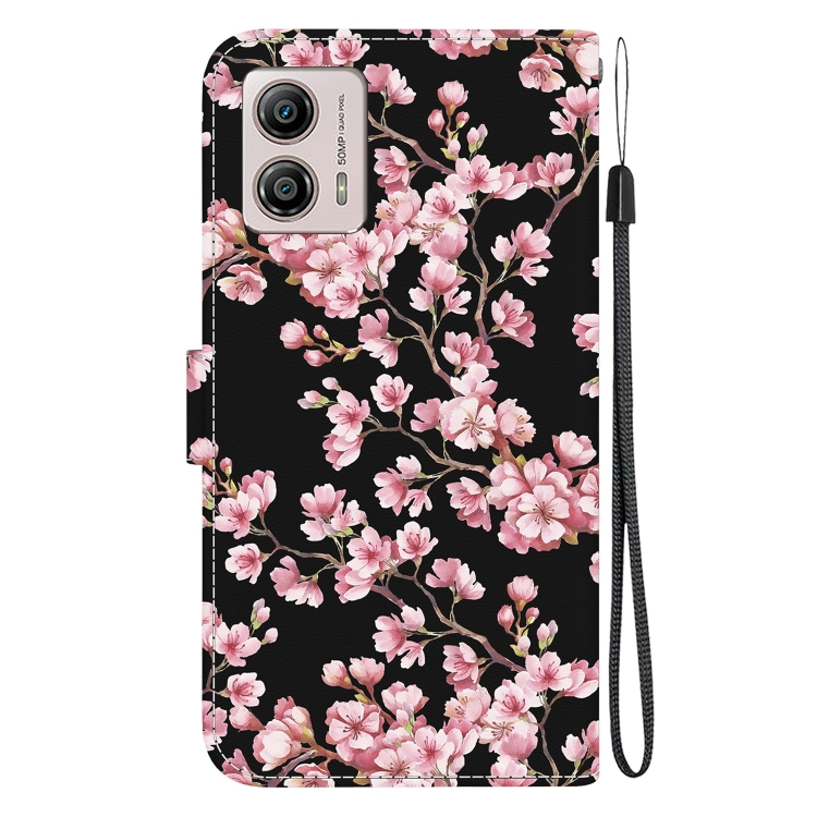 Funda para Motorola Moto G13 / G23 / G53 de Cuero con Dibujo Coloreado y Textura de Cristal (Flor de Ciruelo)