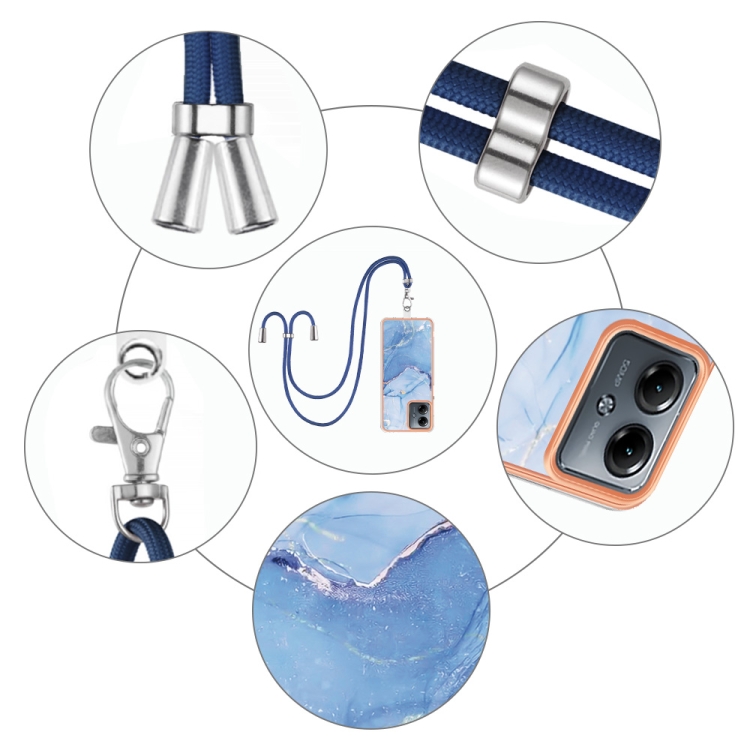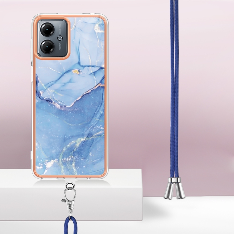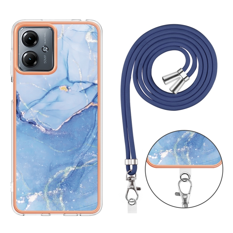 Estuche para Motorola Moto G14 Imd Doble Cara Mármol Galvanizado con Cordón (Azul)