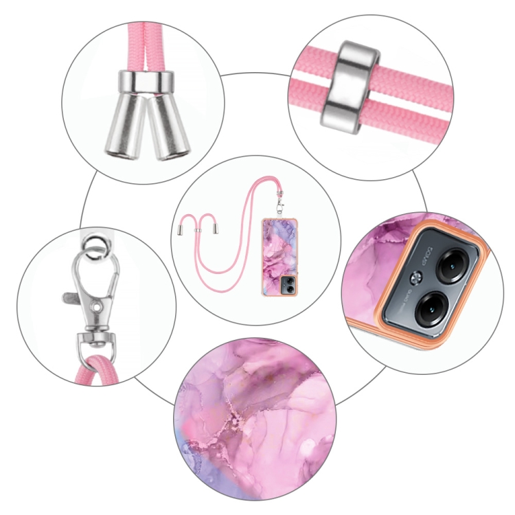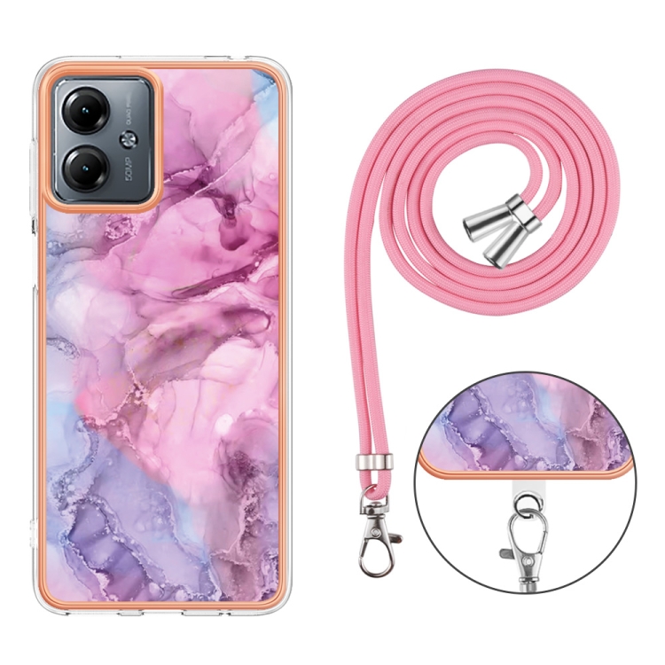 Estuche para Motorola Moto G14 Imd Doble Cara Mármol Galvanizado con Cordón (Rosa)