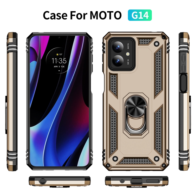 Funda para Motorola Moto G14 TPU + PC a Prueba de Golpes con Soporte (Dorado)