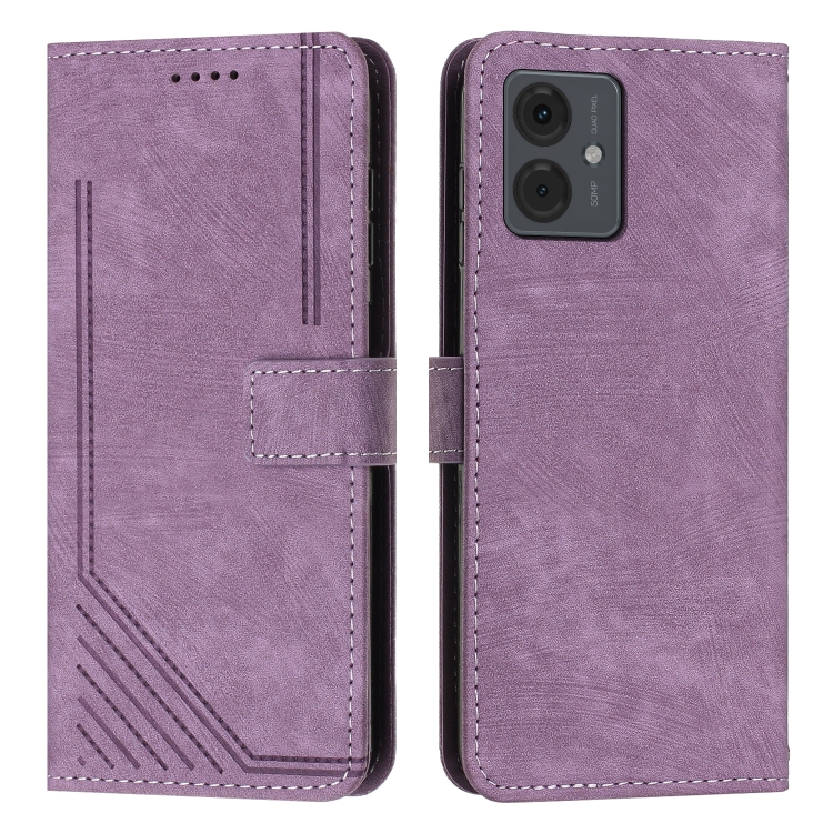 Funda de Cuero Skin Feel para Motorola Moto G14 con Patrón de Rayas y Cordón (Púrpura)
