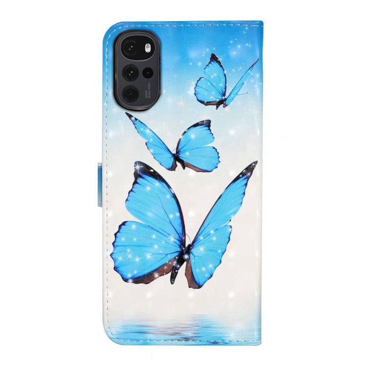 Funda de Cuero para Motorola Moto G22 con Dibujo 3D en Relieve al Óleo (3 Mariposas)