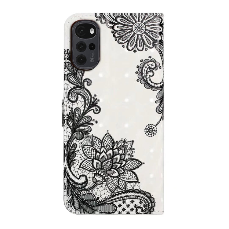 Funda para Motorola Moto G22 de Cuero con Dibujo 3D en Relieve al Óleo (Flor de Encaje)