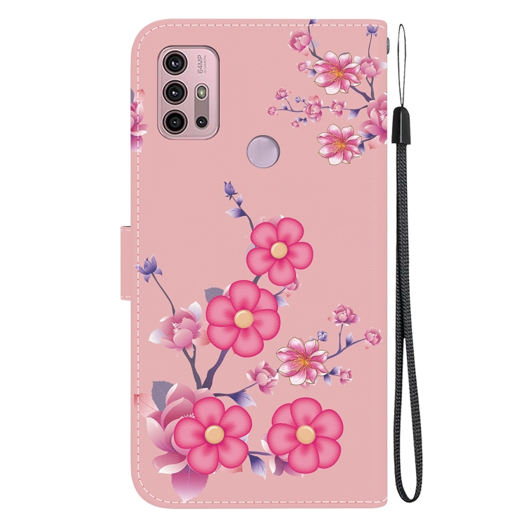 Funda para Motorola Moto G30 G10 G20 de Cuero con Dibujo Coloreado y Textura de Cristal (Flores de Cerezo)