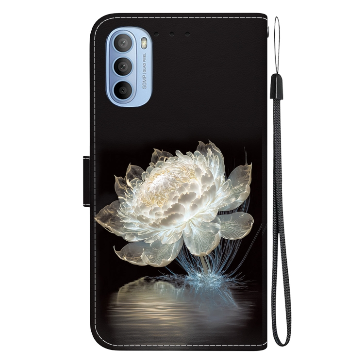 Estuche de Cuero para Motorola Moto G31 / G41 con Dibujo Coloreado y Textura de Cristal (Peonía de Cristal)
