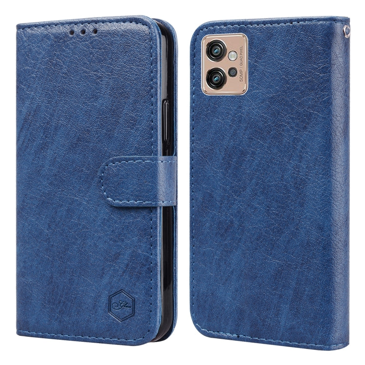 Funda para Motorola Moto G32 Sensación de Piel Aceite Textura de Cuero PU + TPU (Azul Oscuro)