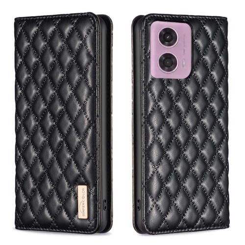 Funda para Motorola Moto G34 5G con Tapa de Cuero Magnético y Diseño Diamond Lattice (Negro)