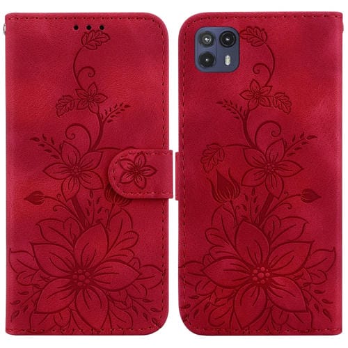 - 1x Funda para Motorola Moto G50 5G Lily de Cuero en Relieve (Rojo)