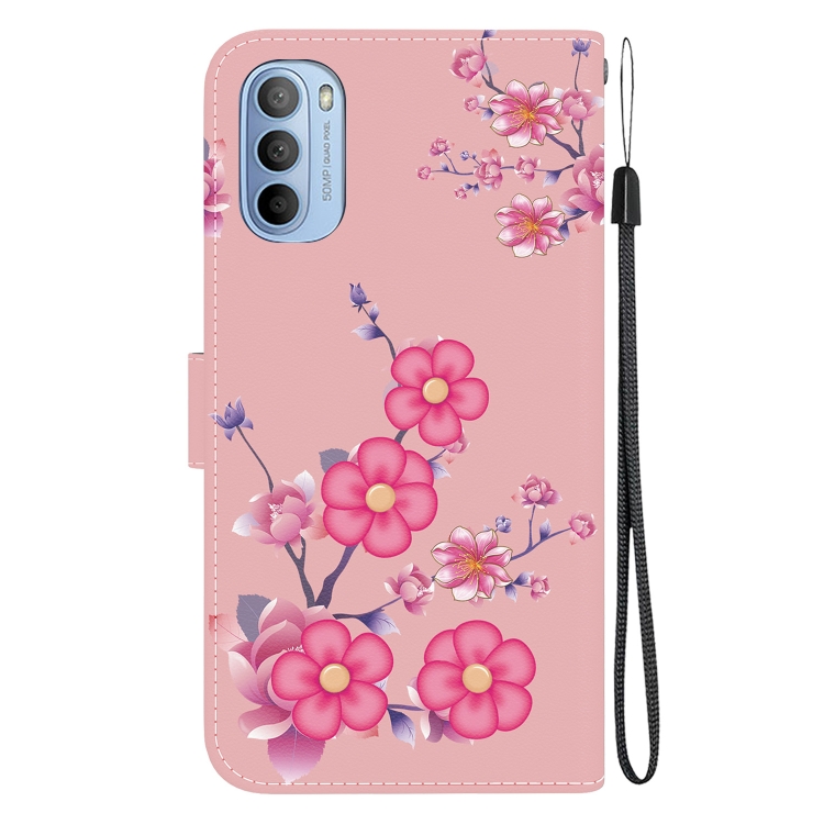 Funda de Cuero para Motorola Moto G51 con Dibujo Coloreado y Textura de Cristal (Flores de Cerezo)