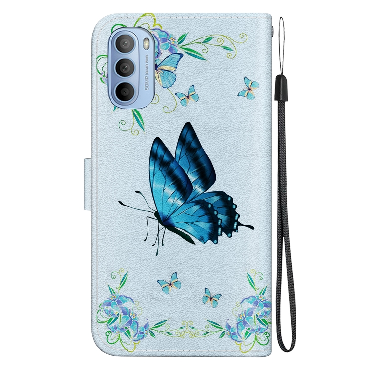 Funda de Cuero para Motorola Moto G51 con Dibujo Coloreado y Textura de Cristal (Pensamientos Azules)