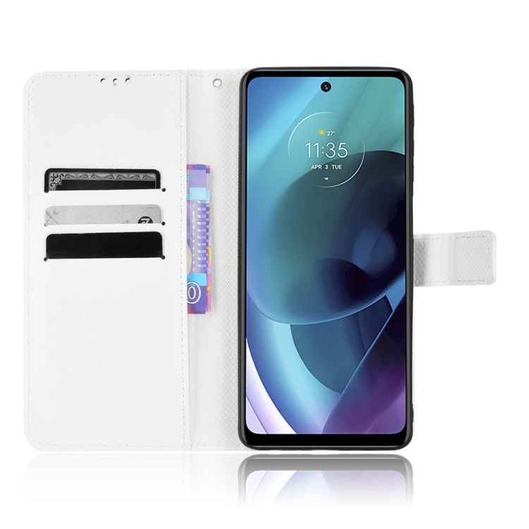 - 1x Caja de Cuero para Motorola Moto G52J 5G con Textura de Diamante (Blanco)