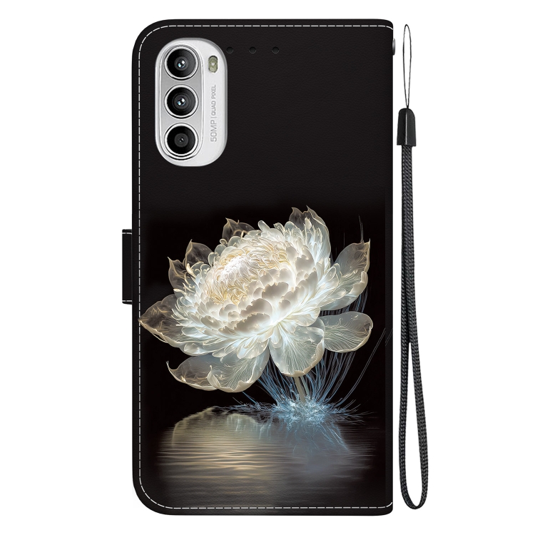 Funda de Cuero para Motorola Moto G52J Jp con Dibujo Coloreado y Textura de Cristal (Peonía de Cristal)