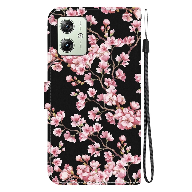 Funda de Cuero para Motorola Moto G54 con Dibujo Coloreado y Textura de Cristal (Flor de Ciruelo)