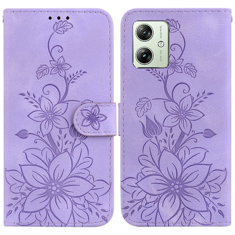 Funda de Cuero para Motorola Moto G54 con Relieve Lily (Púrpura)