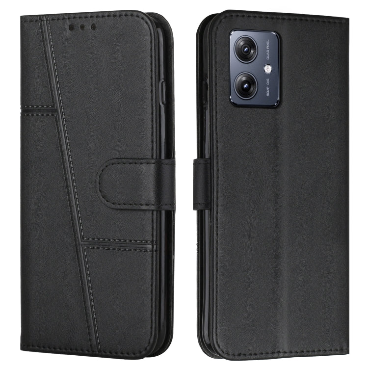Funda para Motorola Moto G54 de Cuero con Hebilla y Textura de Becerro con Costura (Negro)