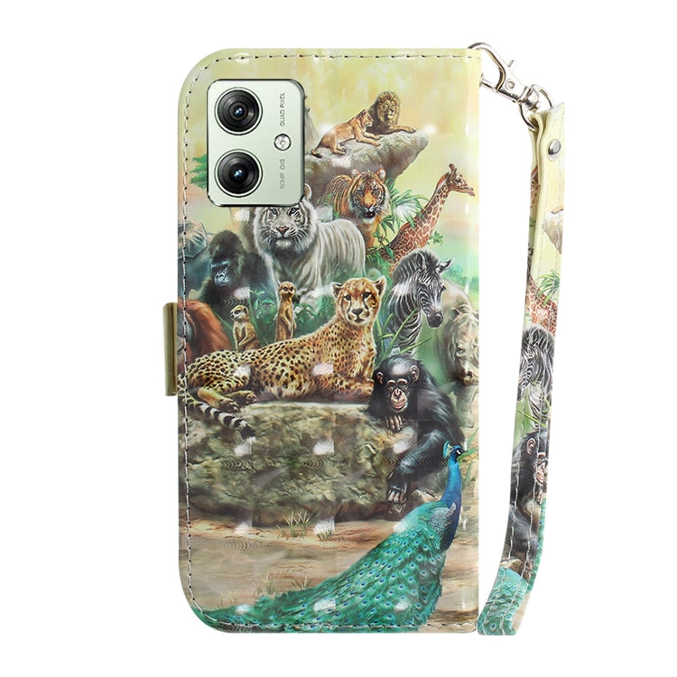 Funda para Motorola Moto G54 de Cuero con Tapa Horizontal y Diseño 3D (Zoo)