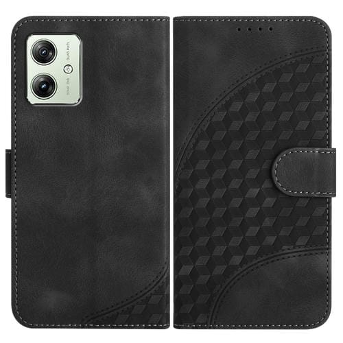 - 1x Funda de Cuero para Motorola Moto G54 Global Yx0060 con Relieve y Cabeza de Elefante con Cordón (Negro)