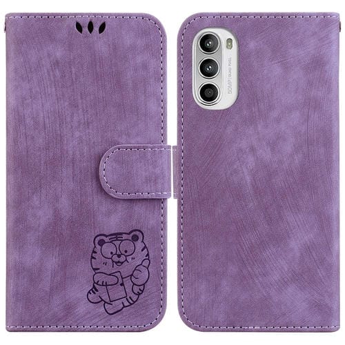 - 1x Funda para Motorola Moto G62 5G de Cuero con relieve Little Tiger (Púrpura)