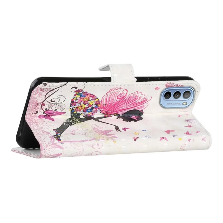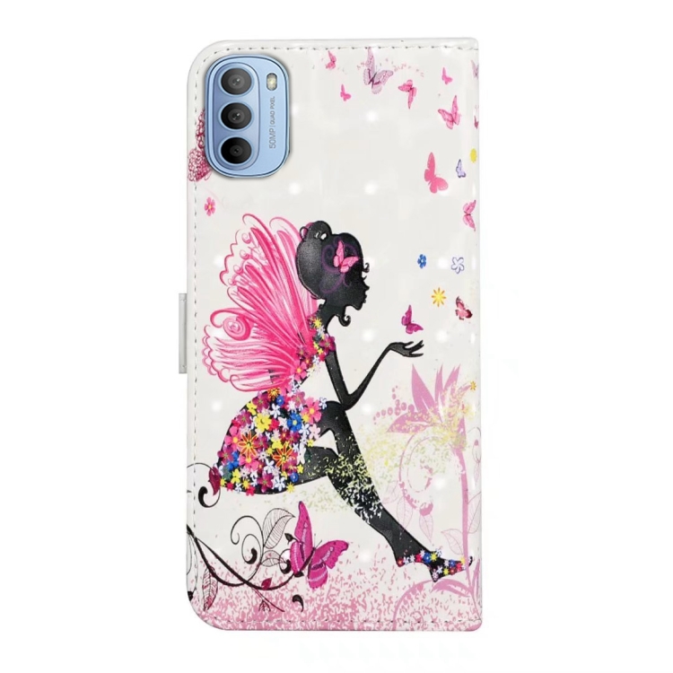 Funda de Cuero para Motorola Moto G62 con Dibujo 3D en Relieve al Óleo (Hada de Flores)
