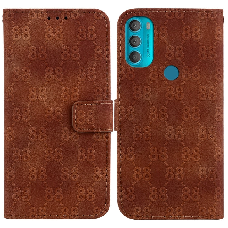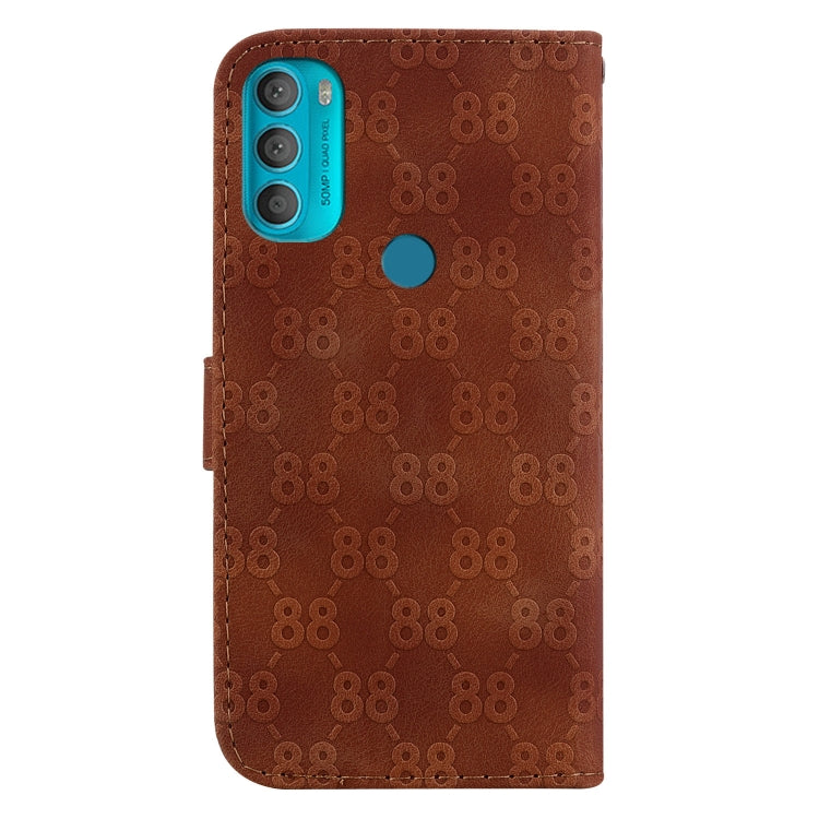 Estuche para Motorola Moto G71 5G de Cuero en Relieve con Doble Forma de 8 (Marrón)