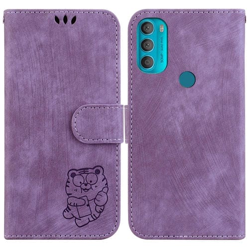 - 1x Funda para Motorola Moto G71 5G de Cuero con Relieve Little Tiger (Púrpura)