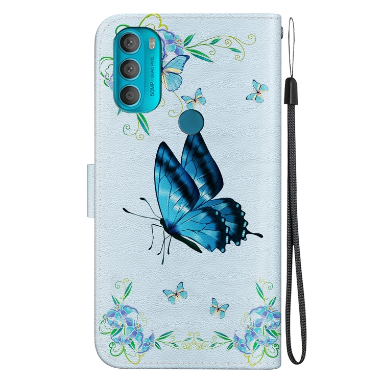 Funda de Cuero para Motorola Moto G71 con Dibujo Coloreado y Textura de Cristal (Pensamientos Azules)