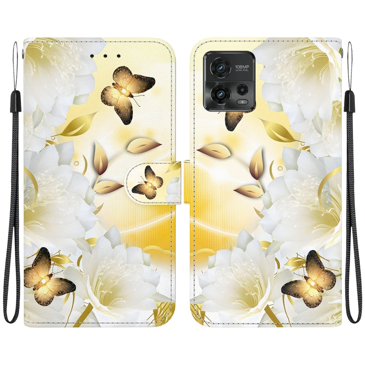 Funda de Cuero para Motorola Moto G72 con Dibujo Coloreado y Textura de Cristal (Epiphyllum de Mariposa Dorada)