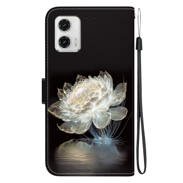 Estuche de Cuero para Motorola Moto G73 con Dibujo Coloreado y Textura de Cristal (Peonía de Cristal)