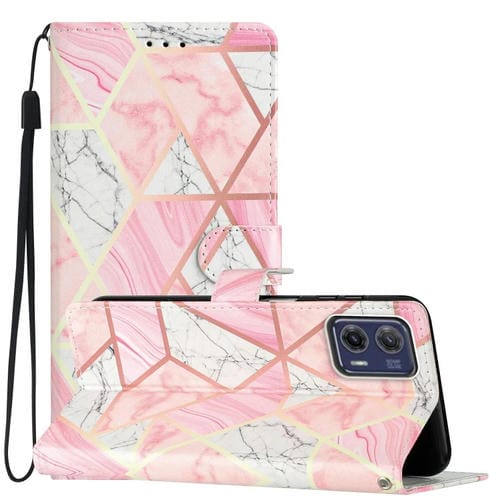 - 1x Estuche para Teléfono Motorola Moto G73 de Cuero con Dibujo Coloreado (Mármol Rosa)
