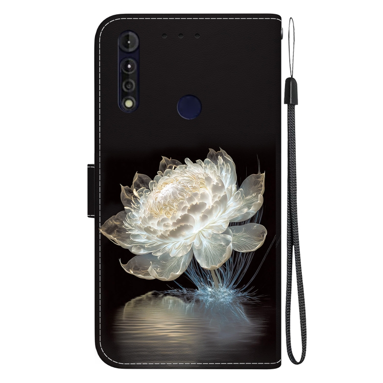 Funda de Cuero para Motorola Moto G8 Power Lite con Dibujo Coloreado y Textura de Cristal (Peonía)