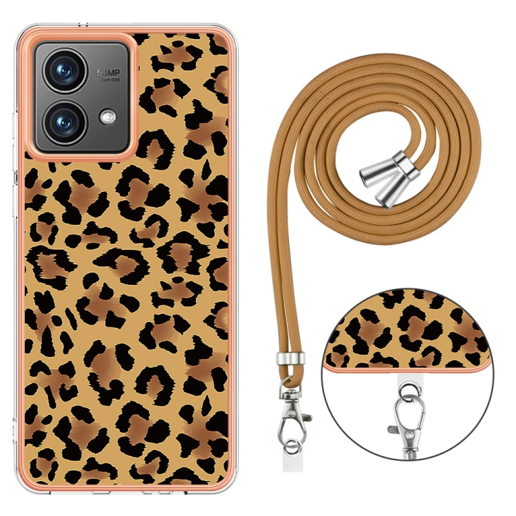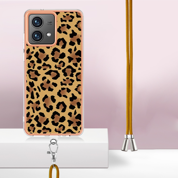 Estuche para Motorola Moto G84 IMD Doble Cara con Galvanoplastia y Cordón (Estampado Leopardo)