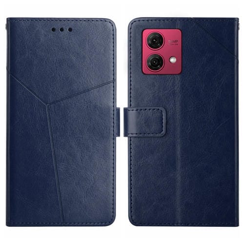 Funda de Cuero para Motorola Moto G84 Ht01 con Tapa y Patrón en Forma de Y (Azul)