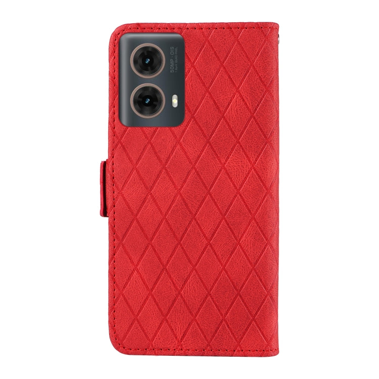 Funda de Cuero para Motorola Moto G85 con Entramado Rómbico de Dos Colores (Rojo)