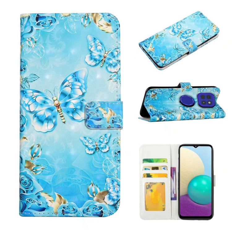 Funda de Cuero para Motorola Moto G9 Play y E7 Plus con Dibujo 3D en Relieve al Óleo (Mariposas Azules)