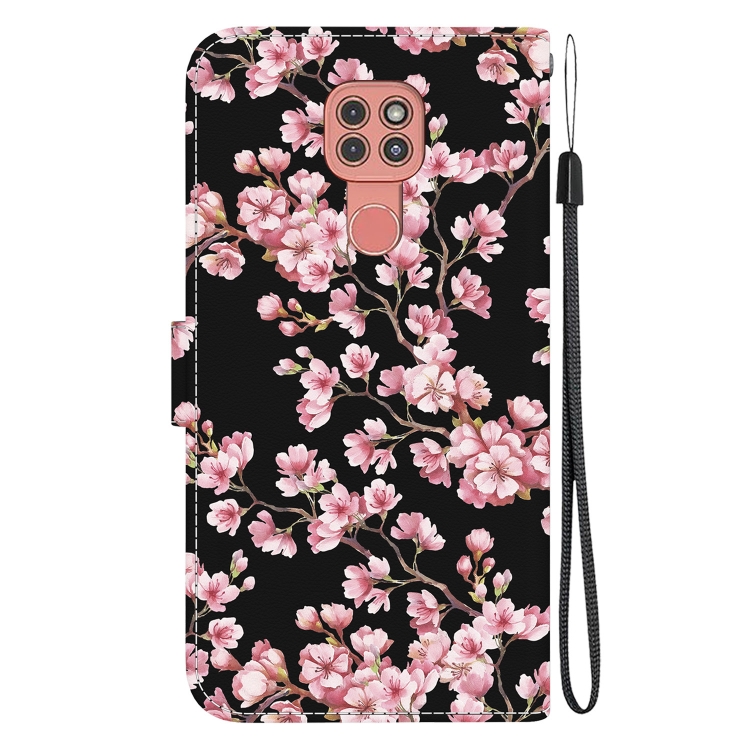 Funda de Cuero para Motorola Moto G9 Play y E7 Plus con Dibujo Coloreado y Textura de Cristal (Plum Bossom)