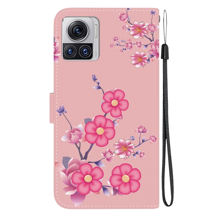 Funda de Cuero Motorola Moto X30 Pro 5G con Dibujo Coloreado y Textura de Cristal (Flores de Cerezo)