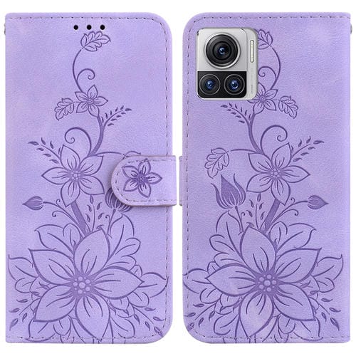 Funda para Teléfono Motorola Moto X30 Pro Edge 30 Ultra 5G Cuero con Relieve Lily (Púrpura)