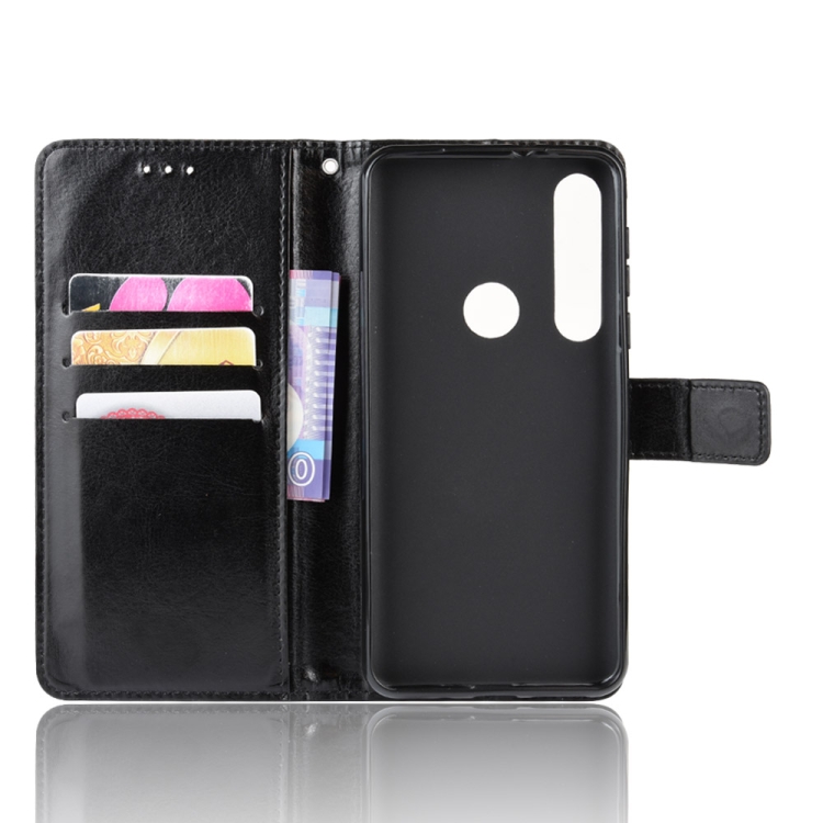 Funda de Cuero para Motorola One Macro con Tapa Horizontal, Soporte, Ranuras para Tarjetas y Marco de Fotos (Negro)