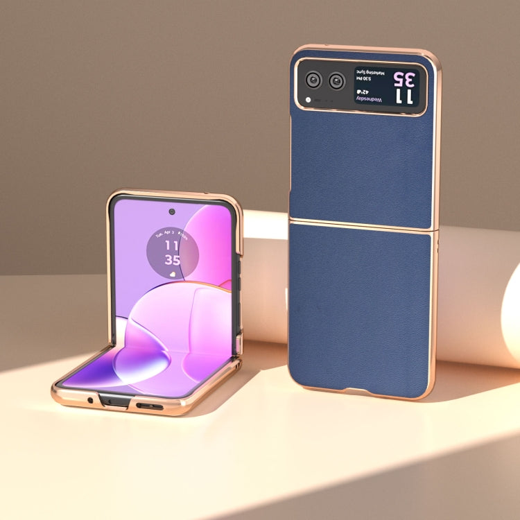 Funda para Motorola Razr 40 Serie Xiaoya de Cuero Genuino con Nanochapado (Azul)