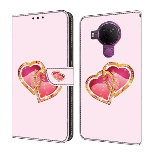 Funda de Cuero para Nokia 3.4/5.4 con Cristales Pintada (Love Peach)