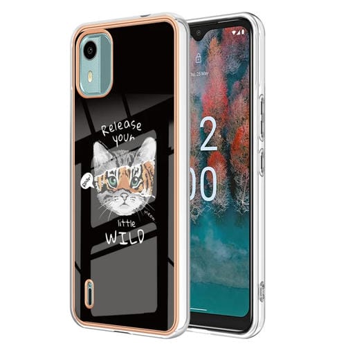 Caja de Teléfono IMD Doble Cara para Nokia C12 Mármol Galvanizado (Crecimiento Natural)