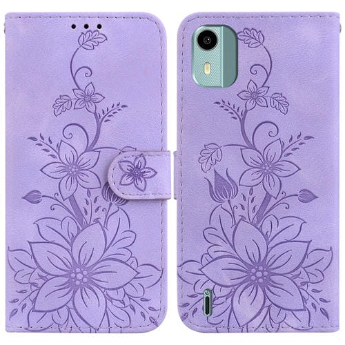 Funda de Teléfono para Nokia C12 Lily de Cuero en Relieve (Púrpura)