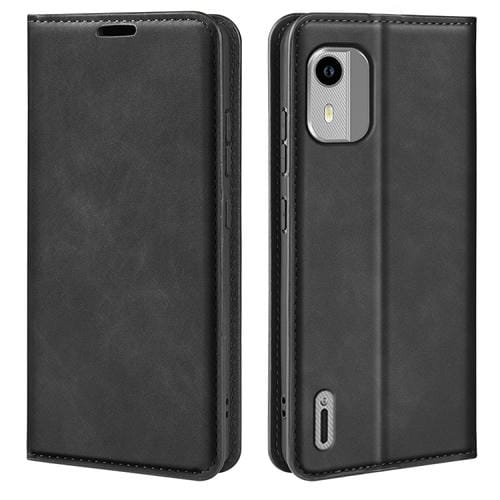 Funda para Nokia C12 Retro-Skin con Succión Magnética de Cuero (Negro)