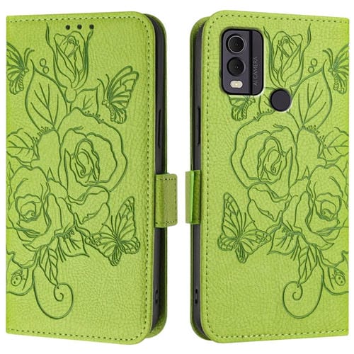 Funda de Cuero Antirrobo RFID para Nokia C22 con Relieve (Verde)