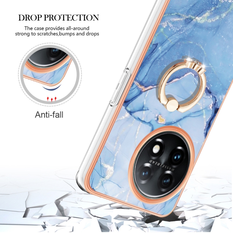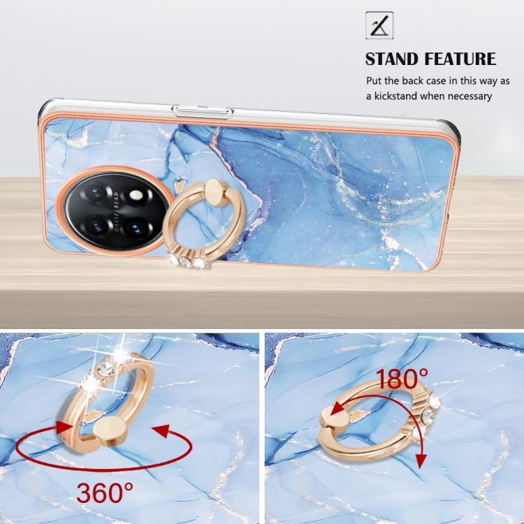 - 1x Estuche para OnePlus 11 IMD Doble Cara Mármol Galvanizado con Anillo (Azul)