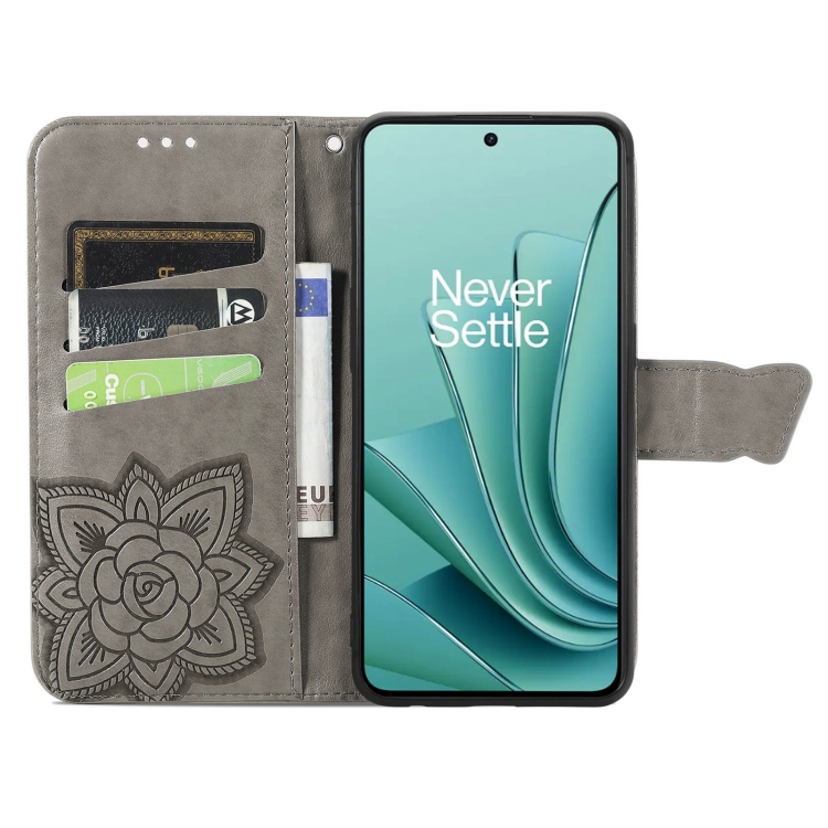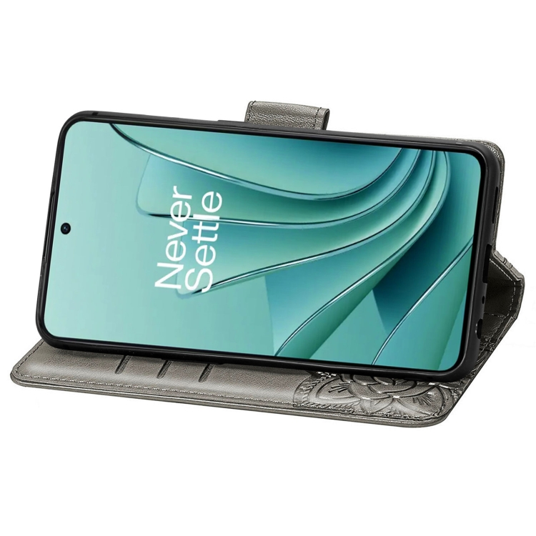 - 1x Estuche para OnePlus Ace 2V Butterfly Love Flower de Cuero en Relieve (Gris)