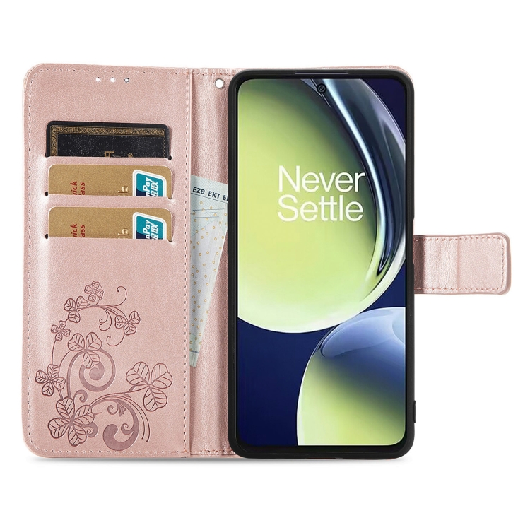 Estuche para OnePlus Nord Ce 3 Lite de Cuero con Hebilla en Relieve y Cierre de Cuatro Hojas (Oro Rosa)