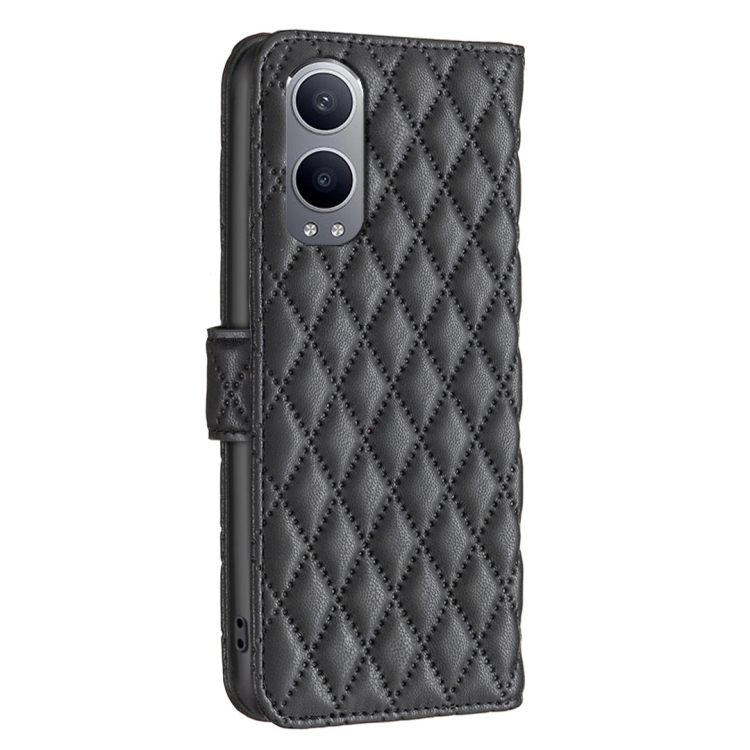 Funda de Cuero con Tapa para OnePlus Nord Ce4 Lite Global Diamond Lattice (Negro)