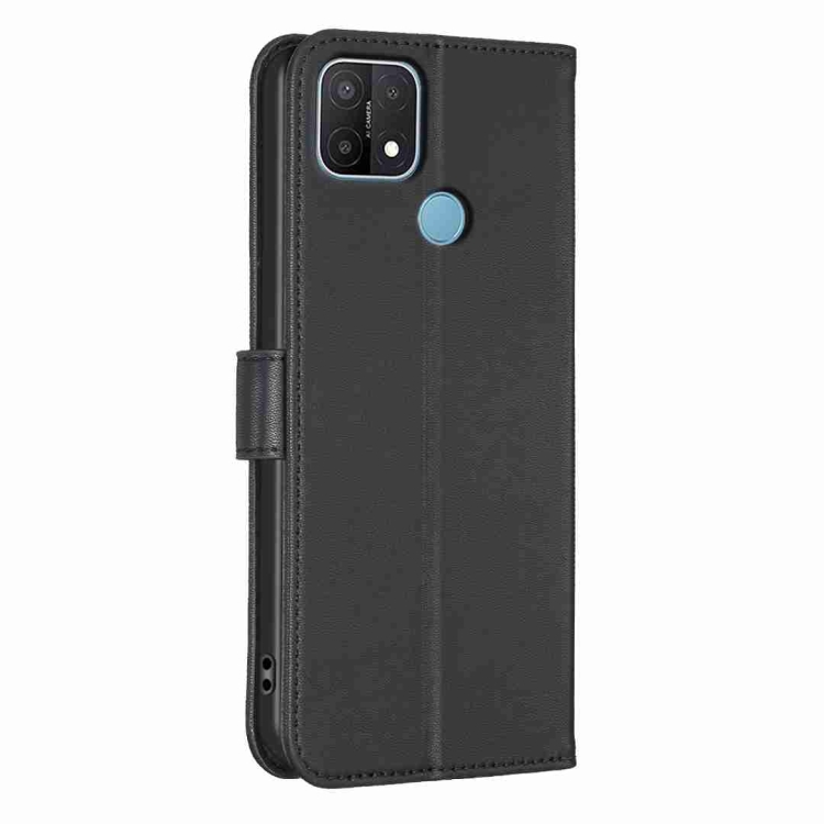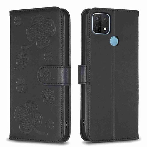 Para Oppo A15 Funda de Cuero con Relieve de Cuatro Hojas (Negro)