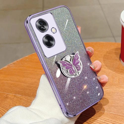 Para Oppo A2 Funda para Teléfono de TPU con Soporte de Mariposa con Brillo Degradado Plateado (Púrpura)